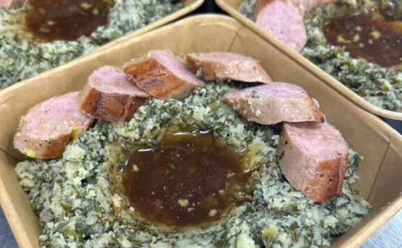Boerenkool stamppot met jus en een saucijsje