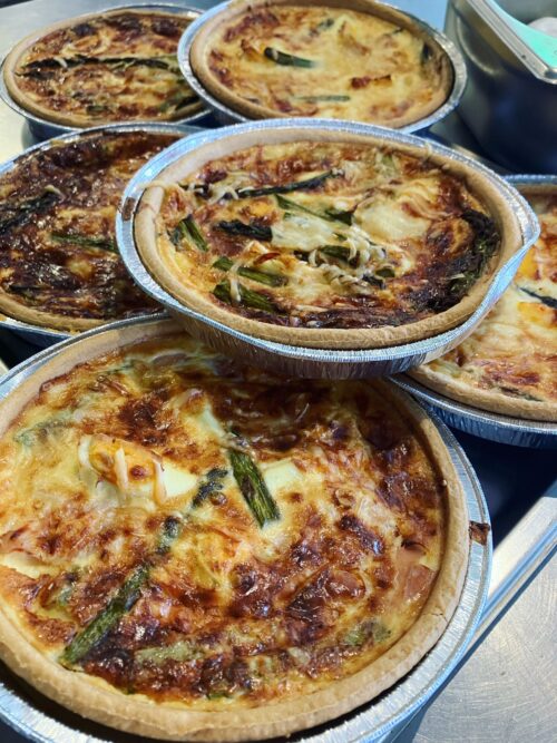 Quiche met geroosterde pompoen, gekarameliseerde ui, feta en walnoten